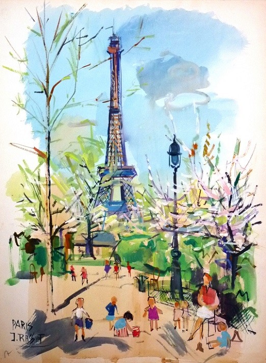 Avril à Paris, 1960, gouache sur papier, 49x65cm