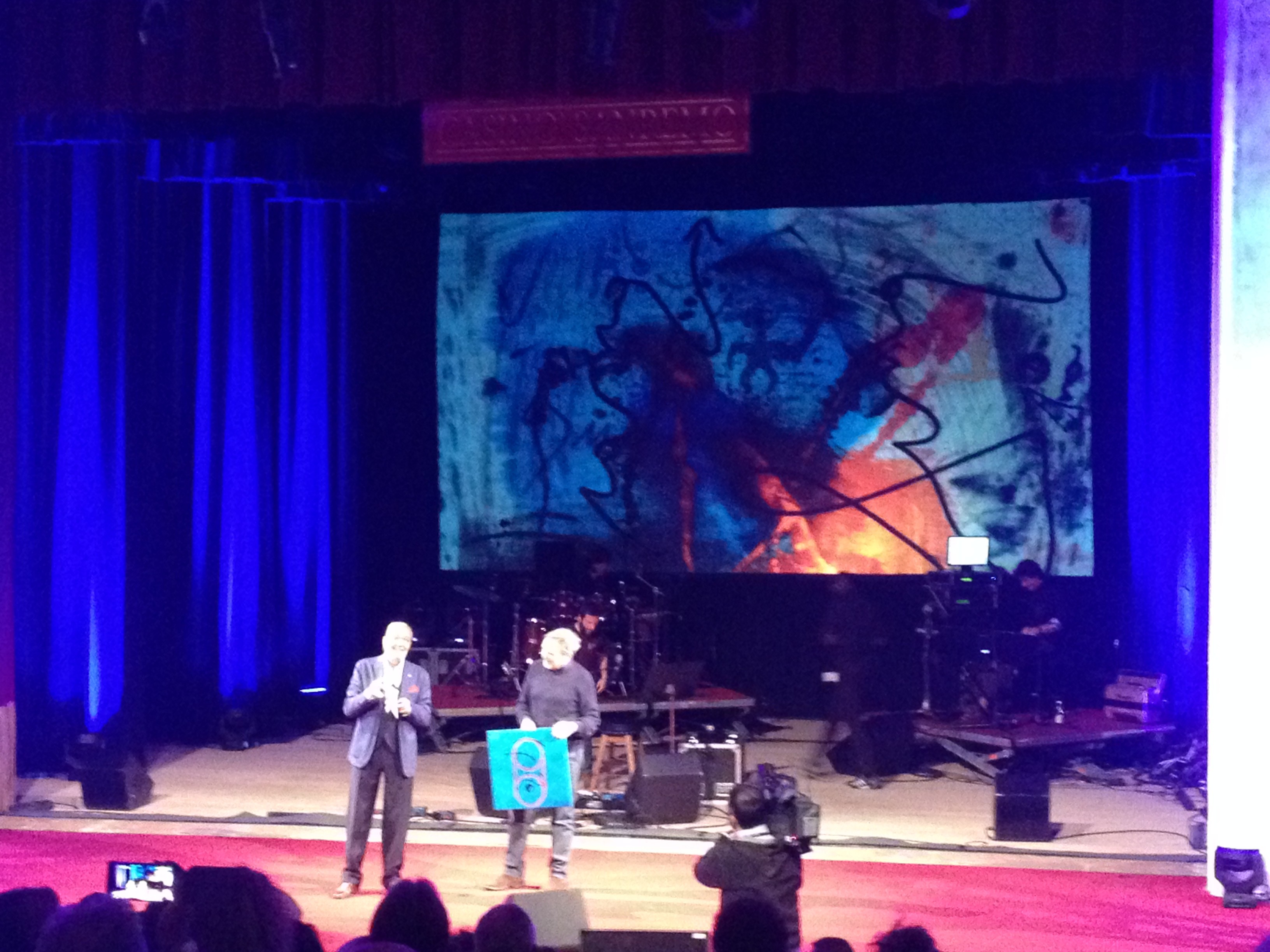 Un incontro di differenti arti e linguaggi espressivi: la musica, la parola, l’immagine, il corpo. Canto e teatralità si sono presi per mano nelle due serate che venerdì e sabato scorsi si sono svolte al Teatro del Casinò di Sanremo con grande successo di pubblico. Il Club Tenco, ospitando questa “due giorni” realizzata dalla propria “costola” catalana, l’associazione barcellonese “Cose di Amilcare”, ha anche avuto modo così di celebrare Amilcare Rambaldi, il leggendario fondatore del Club, nella sua città natale. E proprio in quest’occasione è stato consegnato il Premio Rambaldi a Mauro Pagani, che ha tenuto un’applauditissima performance, ricevendo idealmente le consegne dal precedente “Premio Rambaldi”, il portoghese Sérgio Godinho, anch’egli protagonista della manifestazione insieme a molti altri artisti di diverse nazionalità e culture. Il Premio Rambaldi 2014 consiste in un quadro di Marco Nereo Rotelli, autore di tutte le scenografie della serata.