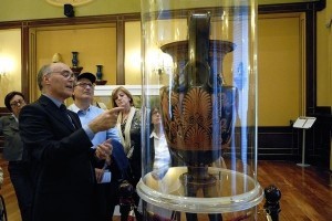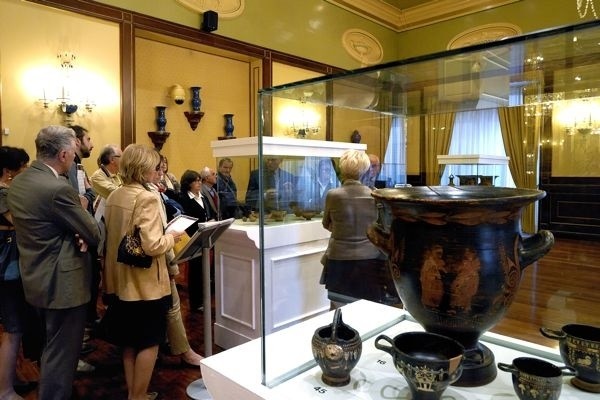 E’ stato il dott. Bruno Massabo, Soprintendente ai beni architettonici della Liguria con il vicesindaco di Sanremo Claudia Lolli ad inaugurare sabato la mostra “Davanti allo specchio lucente” vasi greci nella Sala Dorata del Casinò di Sanremo.