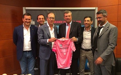 Questa mattina il Sindaco Alberto Biancheri ha preso parte alla conferenza stampa del Giro d’Italia 2015 organizzata da Rcs Sport a Milano alla presenza del Presidente della Regione Liguria Claudio Burlando.