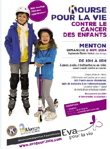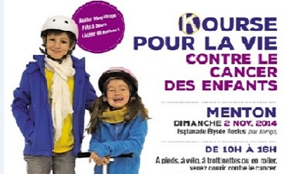 « …Dimanche 2 novembre 2014, de 10h à 16h, c’est la « Kourse pour la vie » sur la Promenade du Soleil à Menton et les enfants roulent contre le cancer !!! »