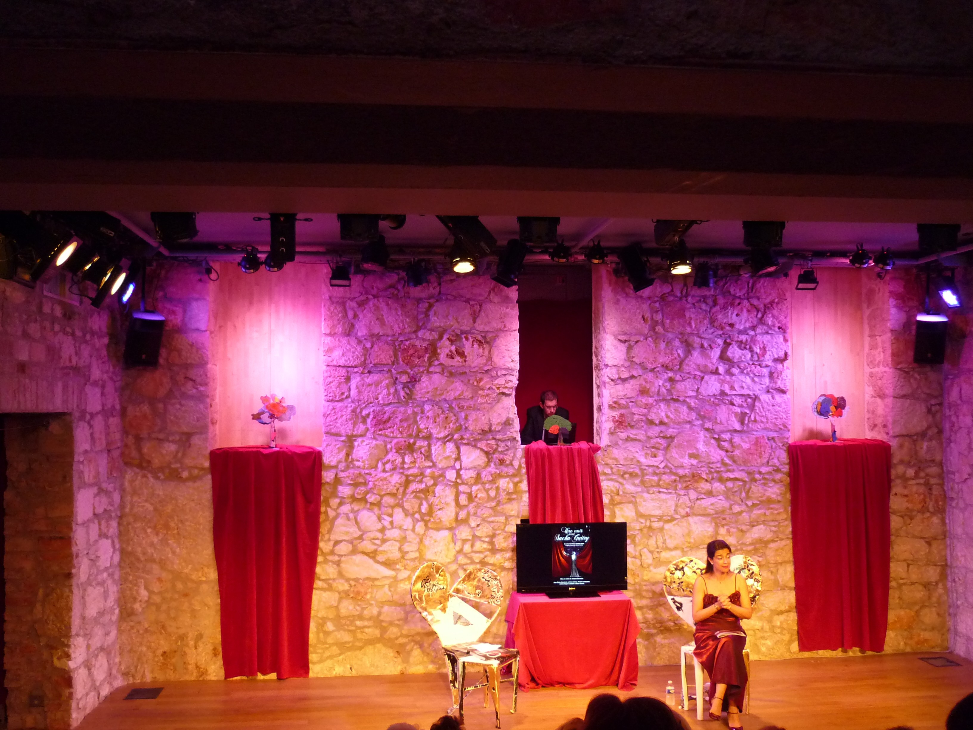 L’attrice Anthéa Sogno ha presentato al pubblico il programma del Théatre des Muses per la stagione 2014-2015, illustrando tutte le rappresentazioni dal mese di ottobre sino al mese di giugno, ecco le parole: ” J’espère donc vous retrouver le plus souvent possible pour partager ces émotion, et vous présenteraux merveilleux artistes, qui peupleront cette saison, comme les fideles spectateurs et amis  des Muses car le théatre est un offre, un échange d’amitié et d’amour entre les hommes, une nourriture aussi indispensable à la vie que le pain et le vin.”