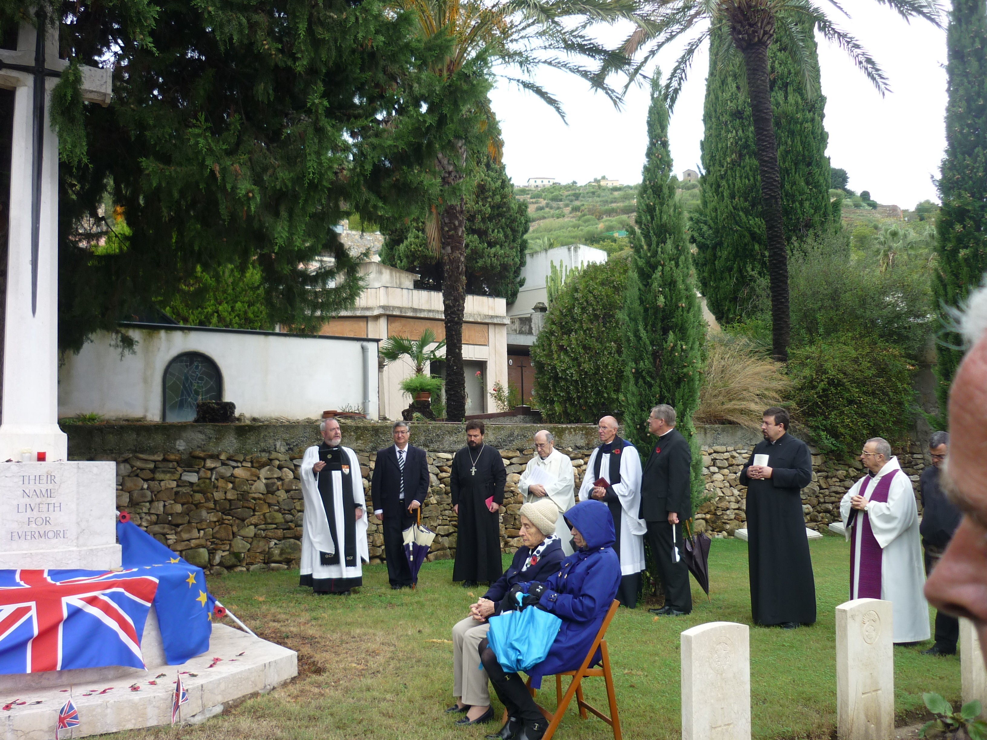 Funzione religiosa  in  ricordo e riconciliazione  in memoria dei caduti della Prima Guerra Mondiale oggi al Cimitero Inglese di Bordighera. L’Arcivescovo Anglicano  Jonathan Boardman affiancato dai ministri delle altre confessioni presenti nel circondario, ha celebrato la cerimonia per il centenario dell’inizio del conflitto.