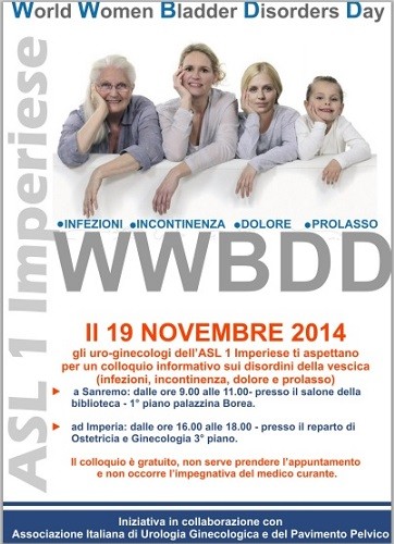 Il 19 novembre 2014, l’Associazione Italiana di Urologia Ginecologica e del pavimento pelvico, ha ideato e promosso WWBDD, World Women Bladder Disorders Day, una giornata mondiale dedicata alla salute della donna.