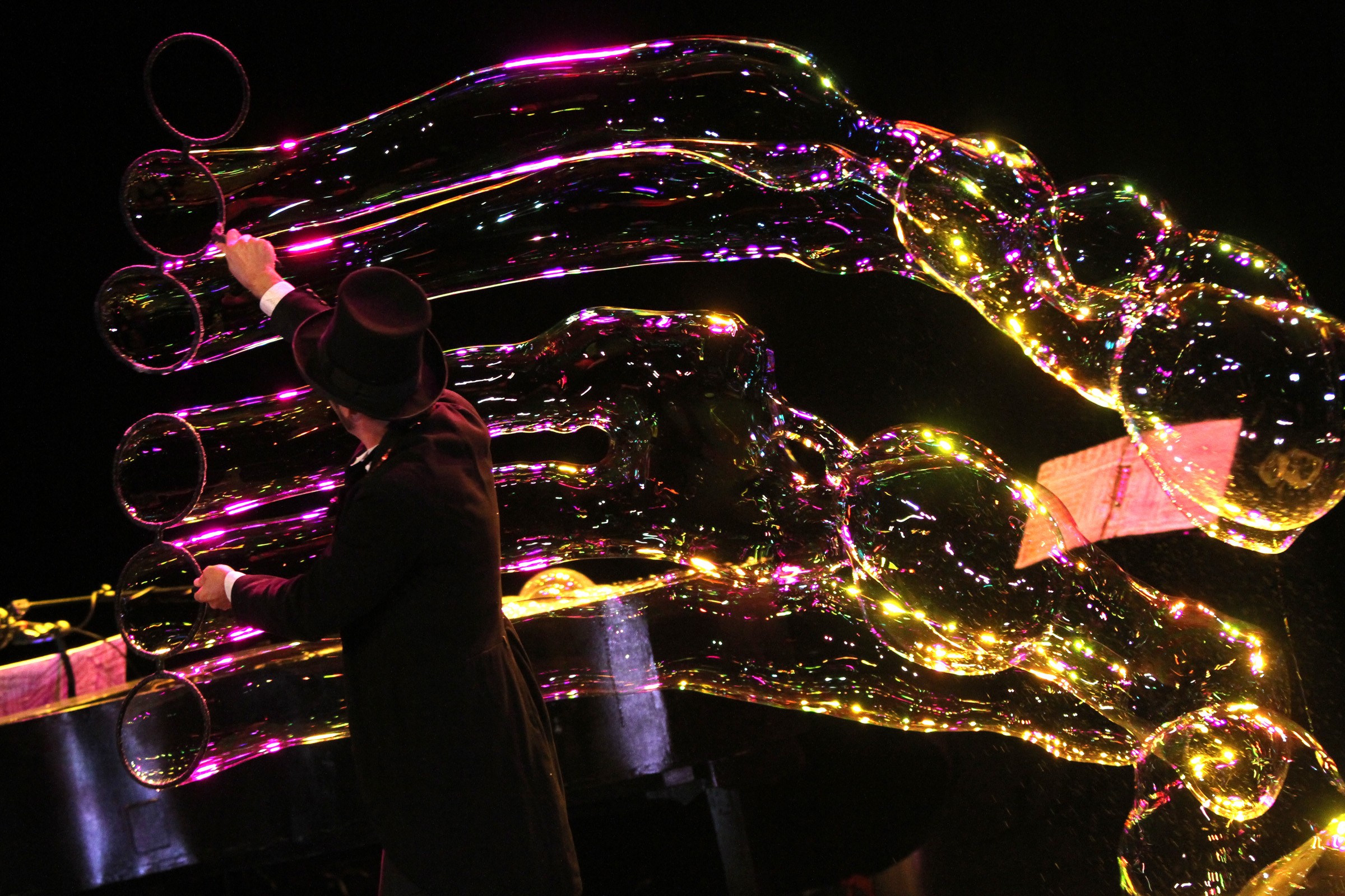 Un viaggio onirico e visuale verso l’alba e verso il sereno accompagnati dalla magia delle piccole cose e da spettacolari effetti con acqua e BOLLE DI SAPONE giganti.