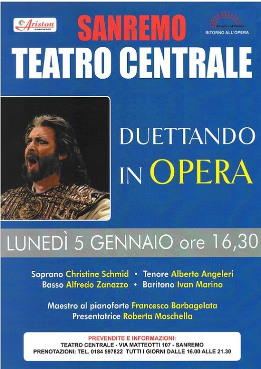 Lunedì 5 gennaio 2015 ore 16.30 concerto al Teatro Centrale di Sanremo “Duettando in opera” a cura di Ivan Marino e l’associazione Ritorno all’opera