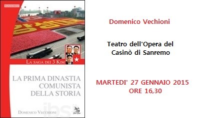 L’ambasciatore Vecchione ripercorre la nascita e l’affermazione della dinastia dei Kim, il cui capostipite viene considerato “Presidente in eterno” simile ad un semidio. L’appuntamento domani, martedì 27 gennaio alle ore 16.30 nel Teatro dell’Opera della casa da gioco. Introduce l’autore Matteo Moraglia, editor Leucotea. Intervento musicale della pianista Veronica Rudian.