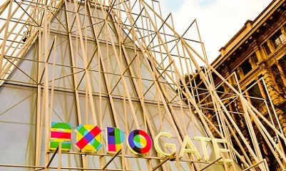 Lo spazio espositivo, di mille metri quadrati, infatti, sarà sorretto da due pareti formate da container sovrapposti e da una copertura lignea centrale a forma di onda interamente ricoperta da un “tetto verde”: un vero e proprio giardino verticale alimentato da sfagno (ndr: un genere di muschio permeabile) e da un sistema di raccolta di acqua piovana.