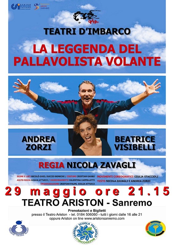 Lo spettacolo è in programma per la serata di Venerdì 29 maggio alle ore 21,15 al Teatro Ariston di Sanremo. ” La leggenda del pallavolista volante” con Andrea Zorzi e Beatrice Visibelli è l’incontro tra sport e teatro, il protagonista è questo grande campione  del passato che ha segnato la storia  della nostra pallavolo, che sale in palcoscenico per farci scoprire in leggerezza la filosofia dello sport, il suo insegnamento morale.