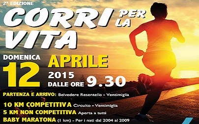 Si svolgerà domenica, 12 aprile 2015, a Ventimiglia, a partire dalle ore 9:30 la seconda edizione di “Corri per la vita”, maratona benefica organizzata da Atletica 92 in collaborazione con Lions Club Ventimiglia e Lions Club Bordighera Otto Luoghi e con il patrocinio della Città di Ventimiglia.