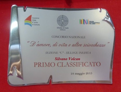 Silvano Volcan , cittadino di Bordighera ha ricevuto il primo premio nel concorso di poesia indetto da Sillabe di Sale , nell’ambito del Salone del Libro di Torino con ” Gocce di Giada” nella sezione Silloge, nel giorno 18 maggio 2015.