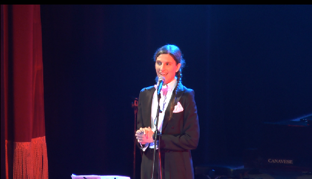 Ospite tanto atteso ed applaudito è stato Leopoldo Mastelloni vestito con un ampio abito bianco con mantello blu perlato, un personaggio dotato di grande originalità , interprete ” sui generis” di “Io sì ” di Tenco e di ” Ti voglio”. Mastelloni ha lasciato la scena trionfalmente sugli applausi del pubblico.