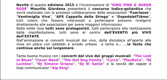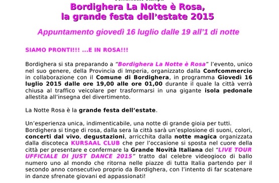 BORDIGHERA “LA NOTTE E’ ROSA”