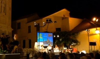 Sul sagrato di piazza dei Corallini il brillante Autore Nicola Lagioia ha incontrato il comico Enrico Bertolino, che in veste di mattatore ha intrattenuto il pubblico. Le sue divertenti : parole” Tremonti diceva che con la cultura non si mangia. Qui io ho mangiato bene” .