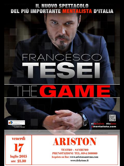 Francesco Tesei presenta il suo nuovo spettacolo “THE GAME” – incantesimi della mente per controllare l’imponderabile , ideato da Francesco Tesei e Deniel Monti – musiche originali di Marco Sabiu.