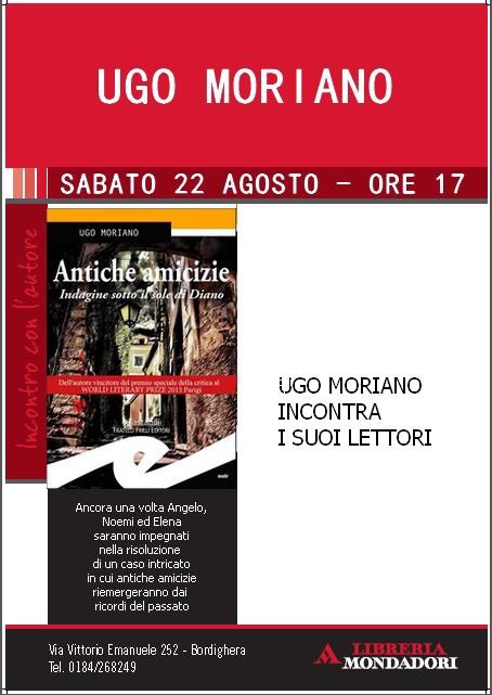 Sabato 22 agosto 2015 a partire dalle ore 17.00 presso la libreria Mondadori di Bordighera (Via Vittorio Emanuele, 252 tel. 0184/268249) Ugo Moriano incontrera’ i suoi lettori.