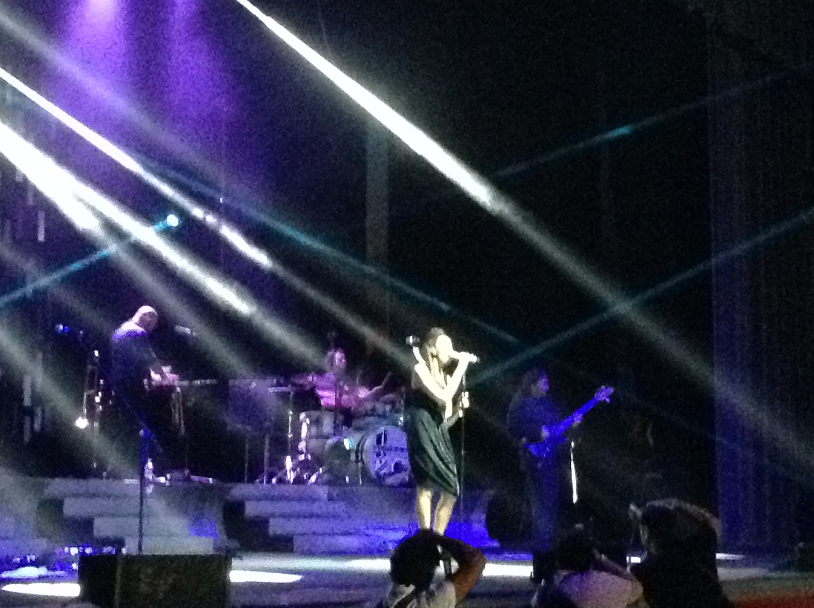 Nina ha iniziato il concerto con un vestito nero molto elegante anni 50′ per poi passare ad un look reggae, pantaloni comodi e cappellone rosso, concludendo con un completo lucido bianco e parrucca caschetto bianco/fuscia. Una vera trasformista che ama stupire il pubblico e coinvolgerlo con coreografie da vera donna blues.