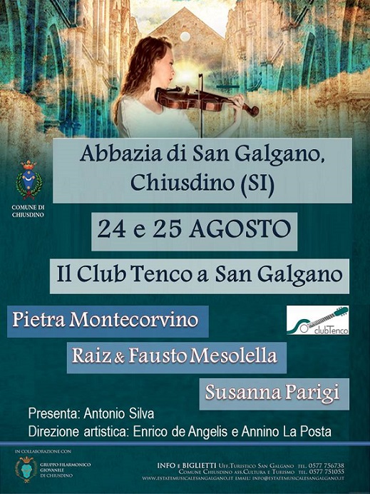 La due giorni, nata su stimolo del cantautore e socio del Club Nicola Costanti, è resa possibile grazie al Comune di Chiusdino ed in collaborazione con il Gruppo filarmonica giovanile/scuola di musica di Chiusdino. Si svolge nell’ambito dell’Estate musicale San Galgano 2015.