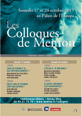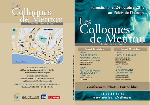 Depuis 1999, « Les Colloques de Menton » réunissent pour des conférences-débats quelques-unes des plus importantes personnalités intellectuelles et scientifiques du moment. Pionniers d’un genre qui a depuis fait école, les « Colloques » suscitent un engouement toujours intact, à Menton et bien au-delà , seize ans après leur création. Toutefois, parce que les pratiques du public évoluent, nous avons fait le choix cette année de leur appliquer une formule plus dynamique.