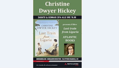 Sabato 16 gennaio alle ore 18.00 il Mondadori Bookstore  di Bordighera, in collaborazione con R&B Agricoltura, ospitera’ la scrittrice irlandese Christine  Dwyer Hickey ” che presenterà il libro  “Last Train from Liguria”, in parte ambientato a Bordighera