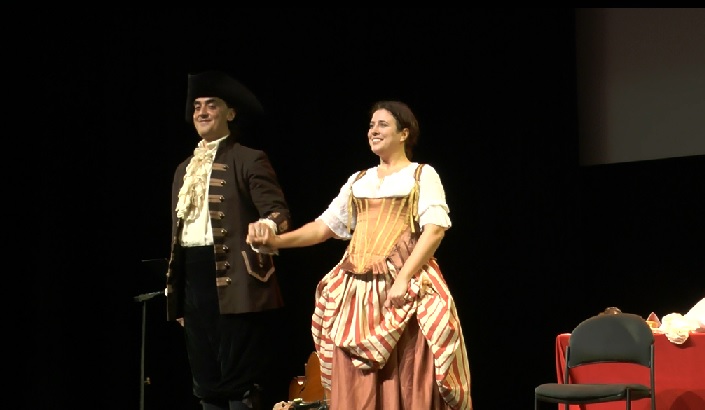 L’attrice si alterna in monologhi e dialoghi, nel rispetto dei testi in dialetto ed in italiano tra i personaggi di Filippo e Giacinta, Filippo e Fulgenzio, Giacinta e Vittoria, Fulgenzio ed Eugenia, Brighella e Beatrice, Clarice e Smeraldina, Arlecchino e Pantalone. Schermaglie d’amore , a sorpresa, competizione, equivoci, inseguimenti, sono gli elementi base della divertente messa-in-scena.