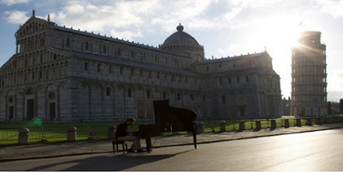Paolo Zanarella suonerà con il suo piano “volando” a 15 metri in aria sopra la scalinata di Porta Principale.