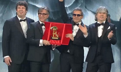 Gaetano Curreri , voce storica degli Stadio nel ricevere il premio dichiara : ” Questo teatro io l’ho amato ed odiato, mai e poi mai avrei pensato di vincere il FESTIVAL…”