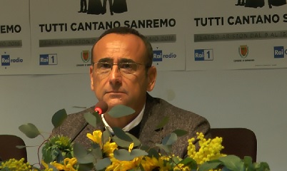 Carlo Conti in conferenza stampa nella  “Sala Lucio Dalla”: in questo Festival ho voluto raccontare tante sfumature del nostro paese con una gara di canzoni. E’ giusto portare alla sfida personaggi che a volte non trovano spazi televisivi e poi continua in risposta alle domande: “Non ho nessun obiettivo professionale è la voglia di chiacchierare con il pubblico che mi aiuta ad  andare avanti”.