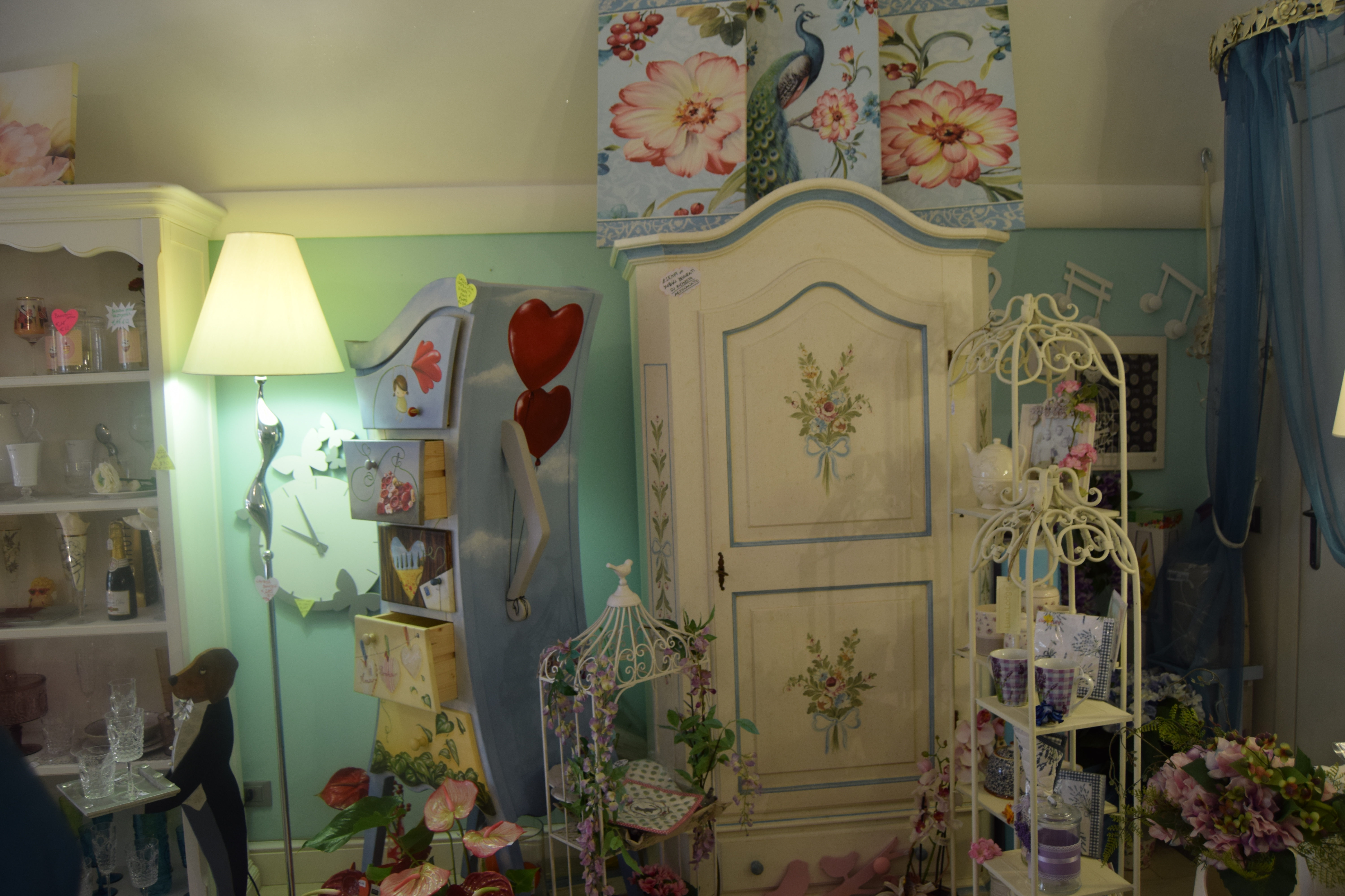 “E’ stata solo ed esclusivamente la “Fantasia”, che, non a caso, è anche il nome scelto per questo che in realtà è molto più di un “negozio: abbiamo una parte di ambienti in stile Provenzale e Shabby con marchi conosciuti quali Blanc Mariclò, Luxe Lodge, Clayre e Eef, Lorenzon Gift, a seguire un piccolo assaggio di mobili interamente decorati a mano e personalizzabili su richiesta, alle pareti orologi di Design dove si è cercato di privilegiare l’Artigianato artistico Made in Italy con Callea Design e Arti e mestieri, le splendide cornici di Legno riciclato africano di Cape Best. E poi arredi e complementi in stile Industriale e Vintage del prestigioso marchio Dialma Brown e Orchidea Milano, le divertenti proposte per la tavola di Brandani, le coloratissime collezioni “Egan” per grandi e piccini; inoltre si confezionano bomboniere dipinte a mano, tableaux de mariage e liste nozze (su ordinazione) con importanti marchi quali Mikasa, Bone China, Fine China, Baci Milano con le sue splendide collezioni in Melammina ed infine…se ancora l’occhio non fosse appagato, offriamo pezzi unici di artigianato artistico e di Antiquariato …Questo e molto altro ancora scoprirete venendoci a trovare!”