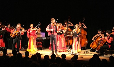 Les violons tziganes vous entraînent vers de nouveaux horizons, une nouvelle histoire musicale racontée par de jeunes artistes engagés, exaltés, créatifs, sans cesse en quête de nouvelles sonorités. Violons, violons altos, violoncelles, contrebasses, flûte, chant, piano et guitare composent cet ensemble.