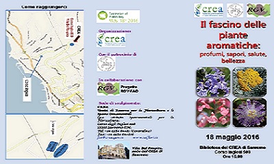 Il CREA di Sanremo si occupa da più di dieci anni di alcune importante piante aromatiche quali le salvie, i rosmarini, gli elicrisi e le passiflore, con l ’obiettivo di esplorare le potenzialità di nuove specie e varietà ad uso ornamentale e bioagronomico, collaborando anche con altri Enti di ricerca e con operatori privati per lo studio delle loro caratteristiche biologiche e applicative. A questo scopo mantiene collezioni vegetali di centinaia di accessioni (specie, varietà , ibridi, genotipi spontanei) che sono la fonte del materiale vegetale in studio e oggetto di interesse per studiosi e operatori di differenti settori produttivi.