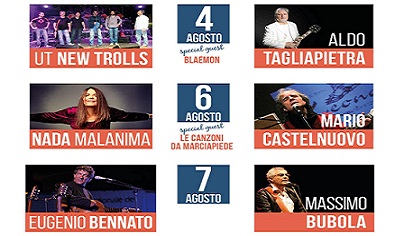 Estate 2016 a Bordighera con Nada, Eugenio Bennato, Mario Castelnuovo, Massimo Bubola, ut New Trolls, Aldo Tagliapietra.
