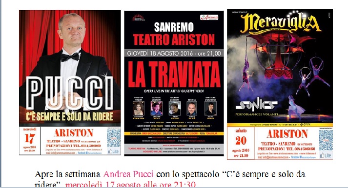 Nella settimana di ferragosto il Teatro Ariston presenta un’eccezionale tris di spettacoli per tutti i gusti: dalla comicità all’opera fino al balletto acrobatico.