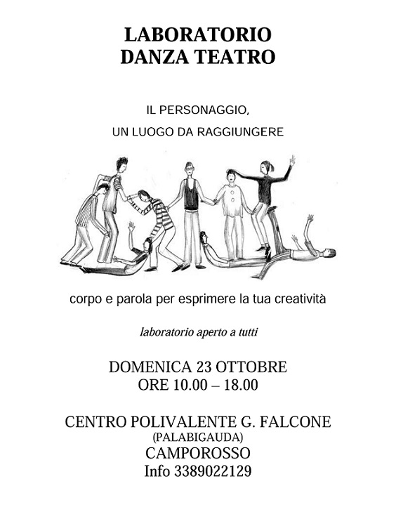 L’associazione Aquilone per la giornata di domenica 23 ottobre 2016 propone un Laboratorio di Danza e di Teatro aperto a coloro che desiderano apprendere le principali nozioni di diverse discipline artistiche .