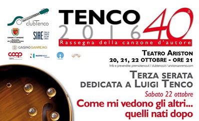 Sarà una serata d’eccezione su Luigi Tenco e le sue canzoni a chiudere la quarantesima edizione del Premio Tenco, la Rassegna della canzone d’autore, in programma dal 20 al 22 ottobre al Teatro Ariston di Sanremo.