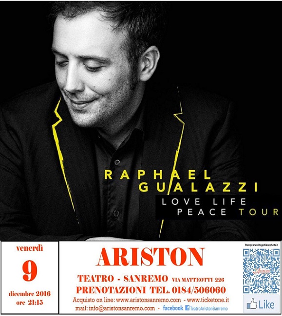Il Teatro Ariston di Sanremo VENERDI’ Â 9 DICEMBRE 2016 alle ore 21:15 presenta RAPHAEL GUALAZZI IN CONCERTO
