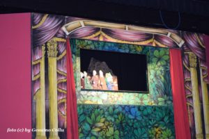 I burattini disegnati da Emanuele Luzzati e realizzati da Bruno Cereseto  hanno divertito i bimbi accorsi per assistere alla  rappresentazione di Alì Babà , che cerca di vincere la banda dei quaranta ladroni e il loro capo Mustafà .