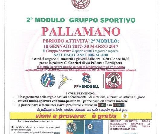 BORDIGHERA – PALLAMANO APERTE LE ISCRIZIONI AI CORSI