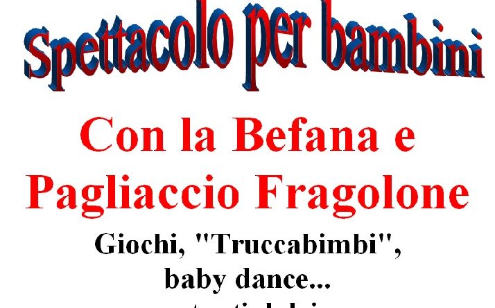 “La Befana e “Fragolone” tutte le feste si portano via!. Giochi, “Truccabimbi”, baby dance…e tanti dolci. INGRESSO LIBERO