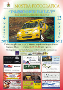 Nella Chiesa Anglicana di Via Vittorio Veneto, angolo Via Regina Vittoria avrà luogo, con il patrocinio del Comune di Bordighera, la Mostra fotografica “Passione Rally” dell’autore Gerardo Salerno, l’esposizione sarà allestita da sabato 4 marzo 2017 sino alla domenica 12 marzo- orario visite : 17:30-19:30.