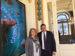 Sanremo, 3 febbraio 2017 – Cinque fortunati clienti delle sale slot della Casa da Gioco seguiranno il Festival di Sanremo nel teatro Ariston. Sono i vincitori del concorso “Slot & Festival”, che hanno partecipato, compilando l’apposita cartolina consegnata dal 19 dicembre al 22 gennaio a chi acquistava un ticket non convertibile del valore di € 10 da puntare nelle sale dei giochi elettromeccanici. Tra questi anche la signora Teresa La Marca, premiata con due biglietti per la quarta serata. Ha consegnato il premio il Direttore Generale del Casinò, Ing. Giancarlo Prestinoni.