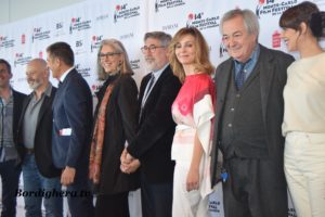 Al tavolo presenti da sinistra il regista Michael Radford Presidente di Giuria ,che assegnerà i premi alla migliore commedia, alla miglior regia, ai migliori interpreti nella serata di Gala domenica 5 marzo 2017 -19h00 al Grimaldi Forum. Durante la conferenza Michael Radford ha ricordato l’attore Massimo Troisi nel film ” Il Postino” che venne premiato come miglior film .