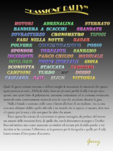 Nell’ ambito delle iniziative per il Rally di Sanremo 2017 il Casinò ospita l’esposizione fotografica “Passione rally” di Gerardo Salerno. Si tratta degli “scatti” che il fotografo ha dedicato alle diverse gare, catturando nell’ obiettivo la velocità, la potenza dei motori ed anche l’eleganza dei modelli.