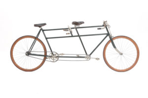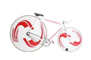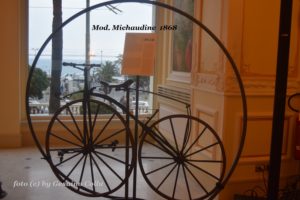 Tra i modelli originali della collezione On the bicycle, possiamo annoverare un primo esemplare di Michaudine datato 1868, un velocipede nato dall’intuizione del giovane Ernest Michaux di applicare un sistema a pedali sulla ruota anteriore, forme ed evoluzione che passano dalle grandi ruote del biciclo, al triciclo di fine 800. Ma ancora tandem, le reclinate e alcuni esemplari sperimentali, per arrivare a modelli più recenti risalenti al 1988 con una delle bici considerate futuristiche per l’epoca, creata appositamente per Francesco Moser in occasione del tentativo del record dell’ora indoor.