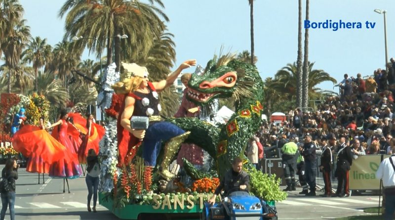 OGGI DOMENICA 12 marzo 2017 sul Lungomare Italo Calvino e Piazzale Carlo Dapporto si è svolta la Manifestazione SANREMOINFIORE 2017 con la Sfilata dei Carri e dei Gruppi Musicali. Il tema TRA SOGNO E REALTA’ ….IL MITO DEI SUPEREROI- è stato realizzato con 12 carri fioriti dai comuni di Golfo Dianese ( Superman), Dolceacqua ( Cal Women), Bordighera ( Uomo Ragno), Riva Ligure (Iron Man), Ospedaletti ( Flash), Isolabona (Wolverine), Taggia ( Batman), Santo Stefano al mare (Thor), Cipressa ( Capitan America), Vallecrosia –Camporosso (Wonder Woman), Ventimiglia ( Super Girl), Seborga ( Hulk).