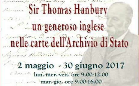 L’ARCHIVIO DI STATO PROTAGONISTA DI UN’IMPORTANTE MOSTRA DOCUMENTARIA SU “SIR THOMAS HANBURY, UN GENEROSO INGLESE”. MARTEDÌ 2 MAGGIO L’INAUGURAZIONE.