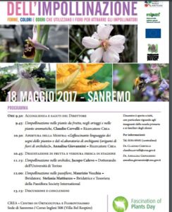 In occasione della giornata mondiale sul Fascino delle Piante (Fascination of Plant Day), il 18 maggio prossimo si terrà presso il CREA-OF di Sanremo, in Corso Inglesi 508, la giornata su “IlFascinodell’impollinazione: forme, colori e odori che utilizzano i fiori per attrarre gli impollinatori” . L’ incontro è aperto a tutti e in particolare agli insegnanti della scuola primaria e ai familiari degli alunni.