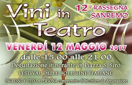 Sanremo “Festival delle bollicine italiane” Domani torna “Vini in teatro”