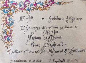 BADALUCCO – MOHAMED SABAAWI PRIMO CLASSIFICATO AL CONCORSO ART GALLERY