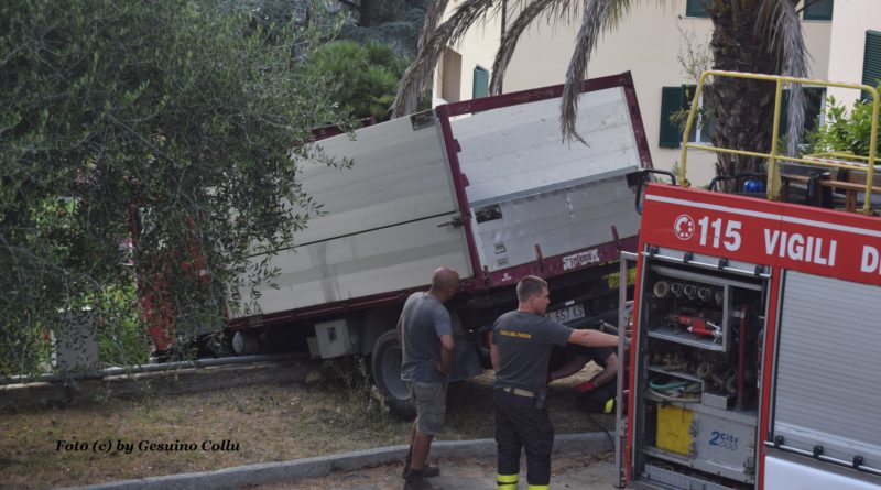BORDIGHERA – CAMION IN BILICO SUL TERRAZZO GIARDINO